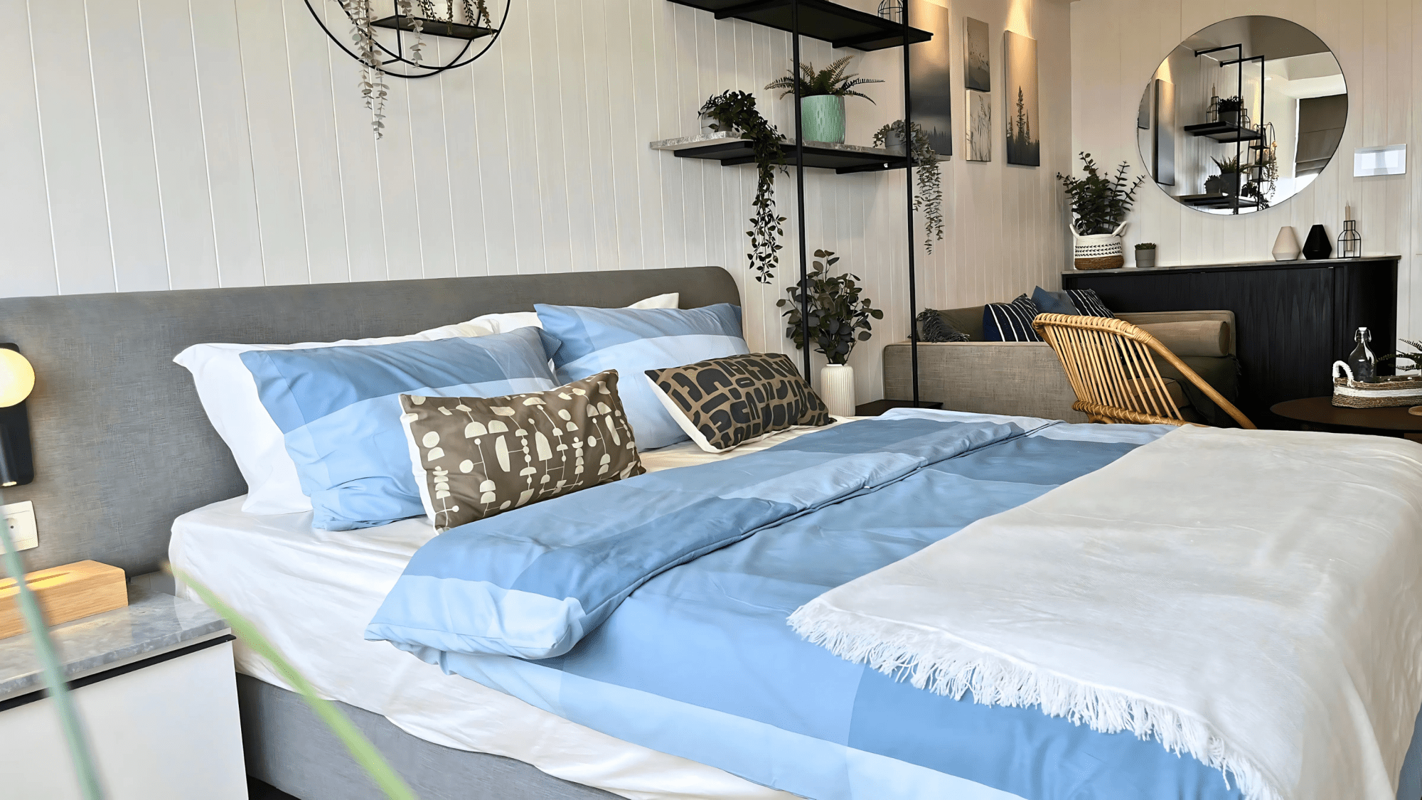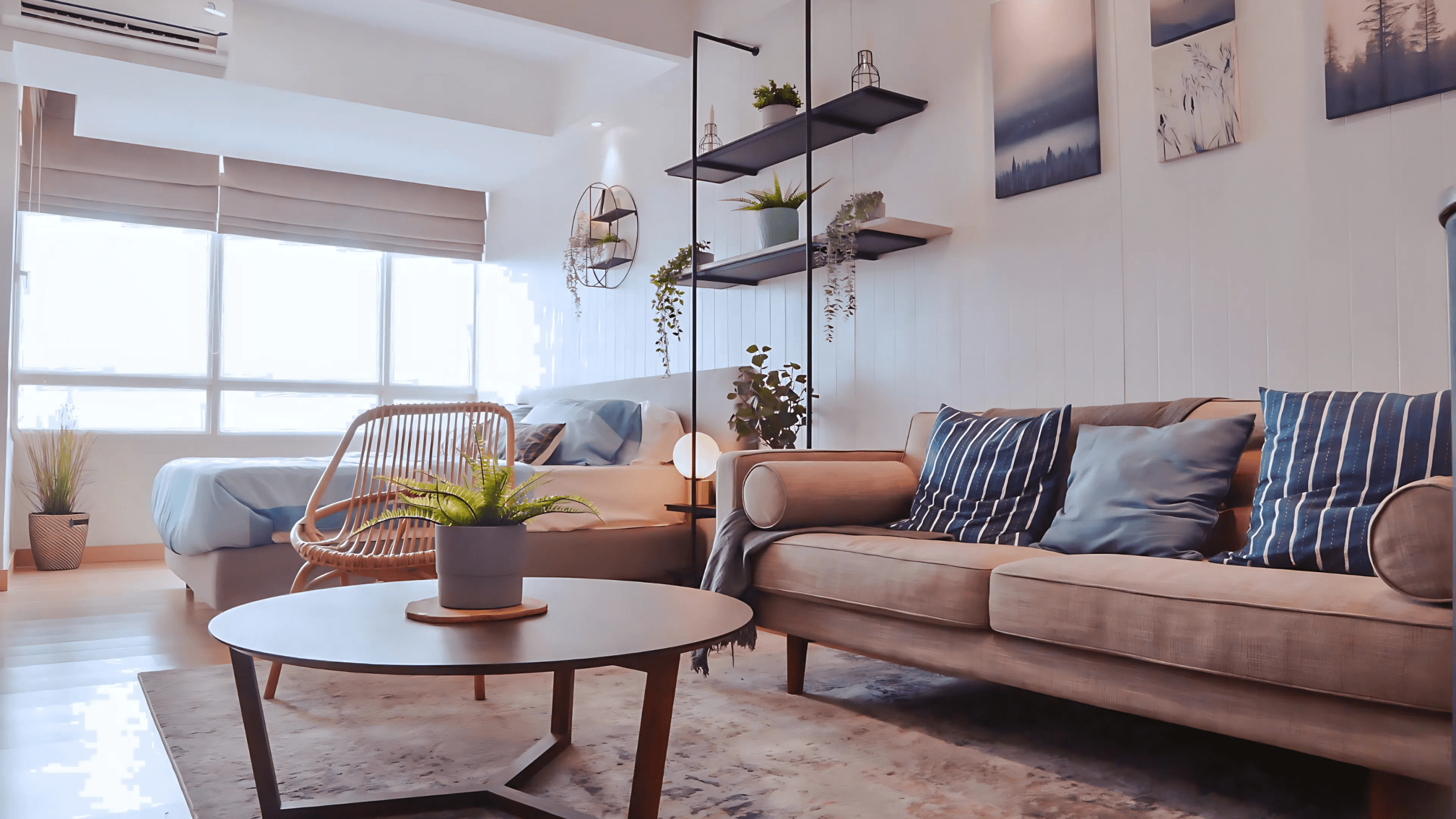 1BR Suite merupakan salah satu tipe unit Skandinavia Apartment, desain yang mengadaptasi konsep Lagom di mana kenyamanan dan keseimbangan menjadi poin utamanya, menjadikan unit ini sangat cocok bagi pasangan muda maupun millennials.